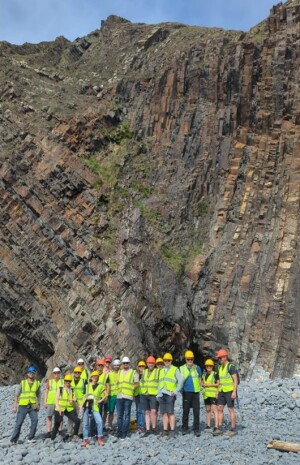 Photo: User group field trip attendees, investigating Chevron folding and turbidites at Hartland Quay, Devon