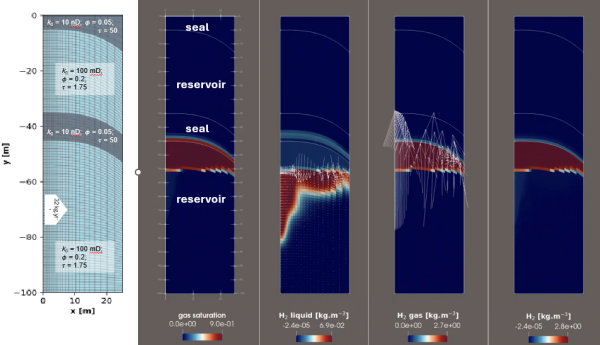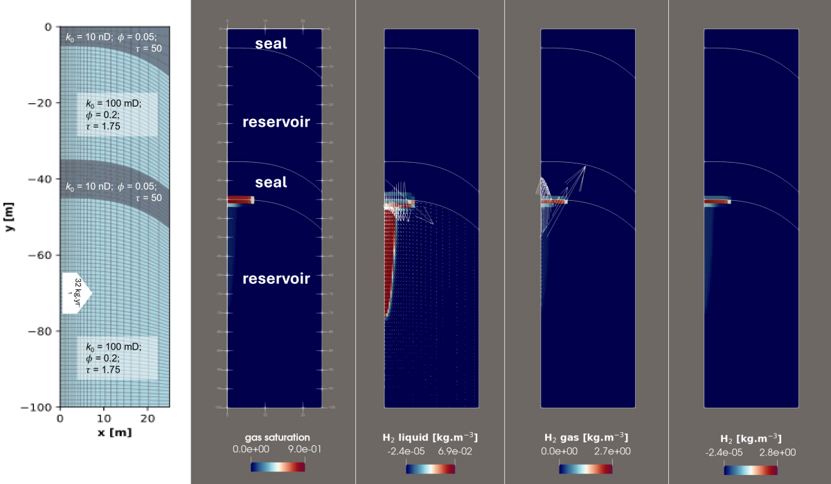 The simulations demonstrate the importance of accounting for the coupling between pore pressures and mechanics via the poroelastoplastic behaviour of the matrix (changes in porosity, permeability and tortuosity). Considering these feedbacks is essential for understanding the migration and trapping processes of geological (natural) hydrogen, and for predicting the behaviour of reservoirs under production conditions.